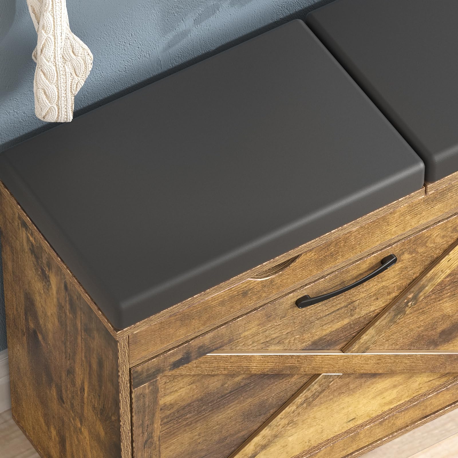 【Storage Bench with Removable Cushion 】: The 2-inch thickened black PU leather cushion is comfortable to sit on, resistant to dirt and easy to clean. It enables you to sit comfortably on the shoe cabinet bench to change shoes instead of squatting, and take a short break while taking off your shoes when back home after a busy day.