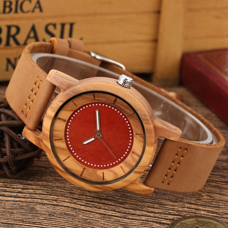A classic leather strap complements the wooden design, creating a harmonious blend of style. The leather not only adds a touch of timeless sophistication but also ensures the watch is suitable for a variety of occasions. This versatility allows the watch to effortlessly transition between casual and formal settings.