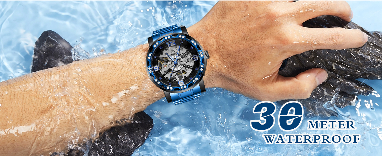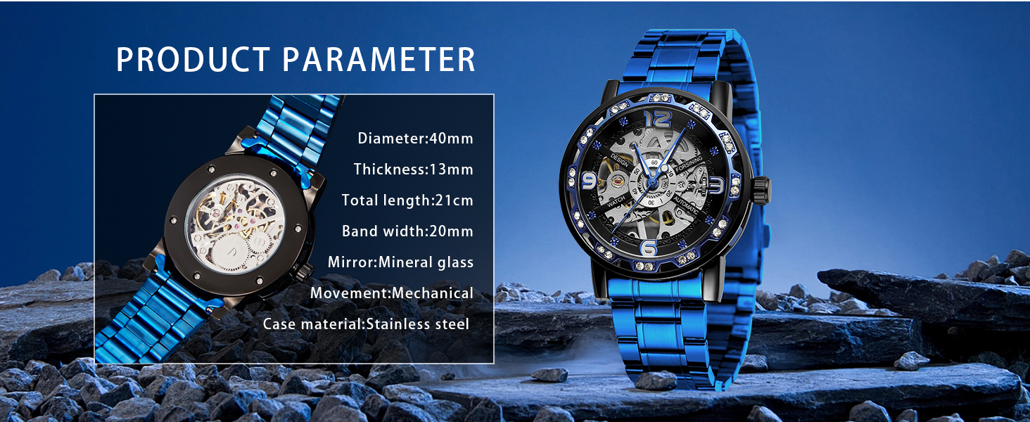 - 【LUXURY STEAMPUNK STYLE】Luxurious diamond design ,Classic skeleton dial, Roman numeral dial, give you exceptional artistic beauty.This skeleton watch with a transparent lower cover, you can see the movement of the watch movement.
