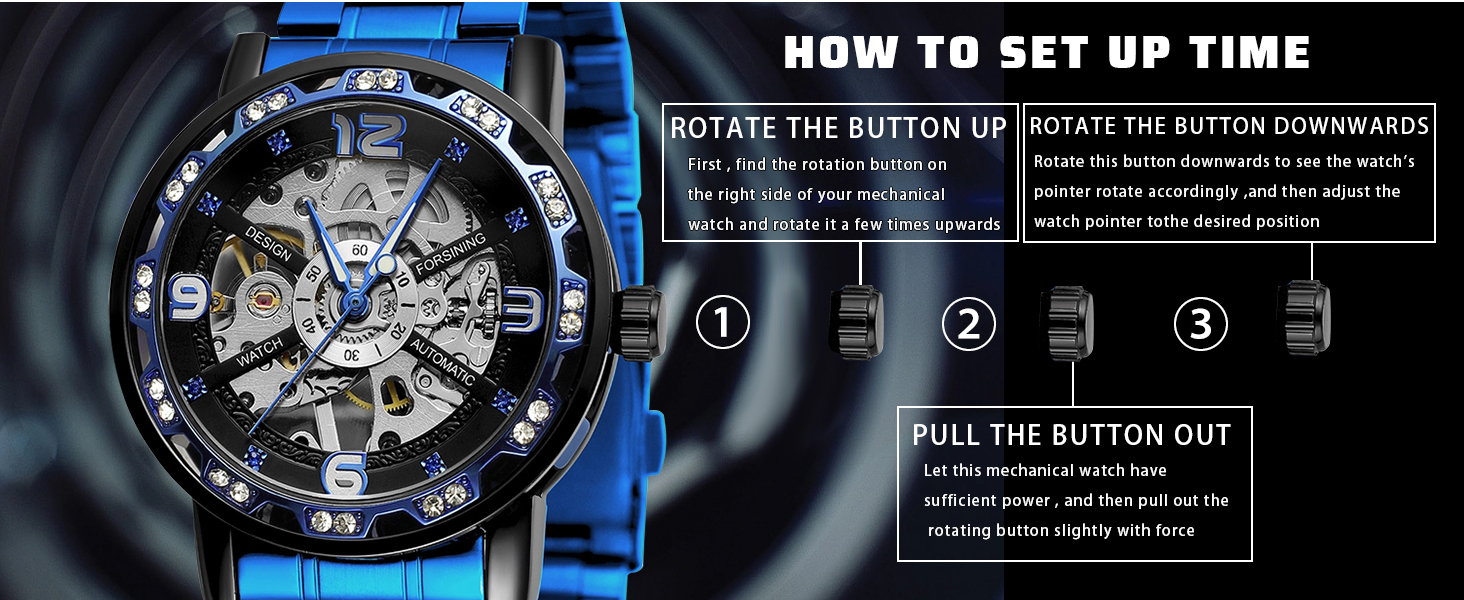 - 【WITHOUT BATTERY 】Only need to wind the mechanical watch and it would keep working,don't worry about the battery is dead.NOTE that you should wind it every day.