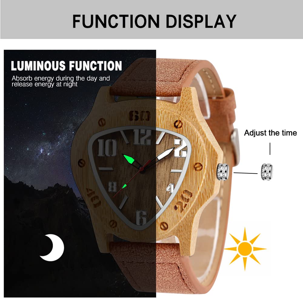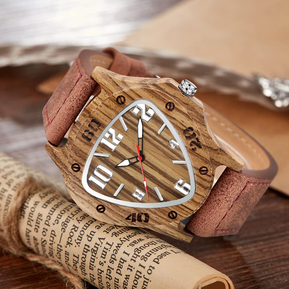 - Men's Watch: The color of this men's leather belt wooden watch is selected from the more popular brown, which can be used for business or leisure, and is very suitable for daily wear.
