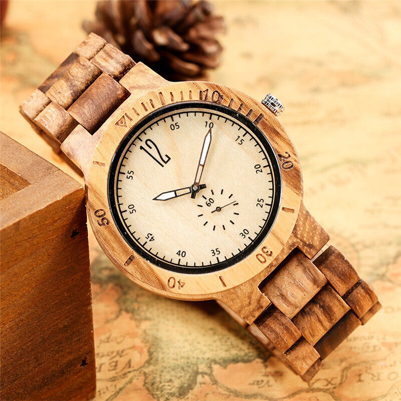 Wood Band Care: Given the elegant all-wood band, consider the care instructions for maintaining its appearance. Avoid exposing the watch to excessive moisture or extreme environmental conditions to preserve the wood's integrity.