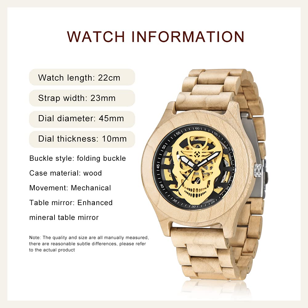- Top technology: Automatic mechanical movement, powered by mechanical movement, without battery. The 30M waterproof watch can withstand hand washing or splashing water, and is not suitable for swimming or showering.