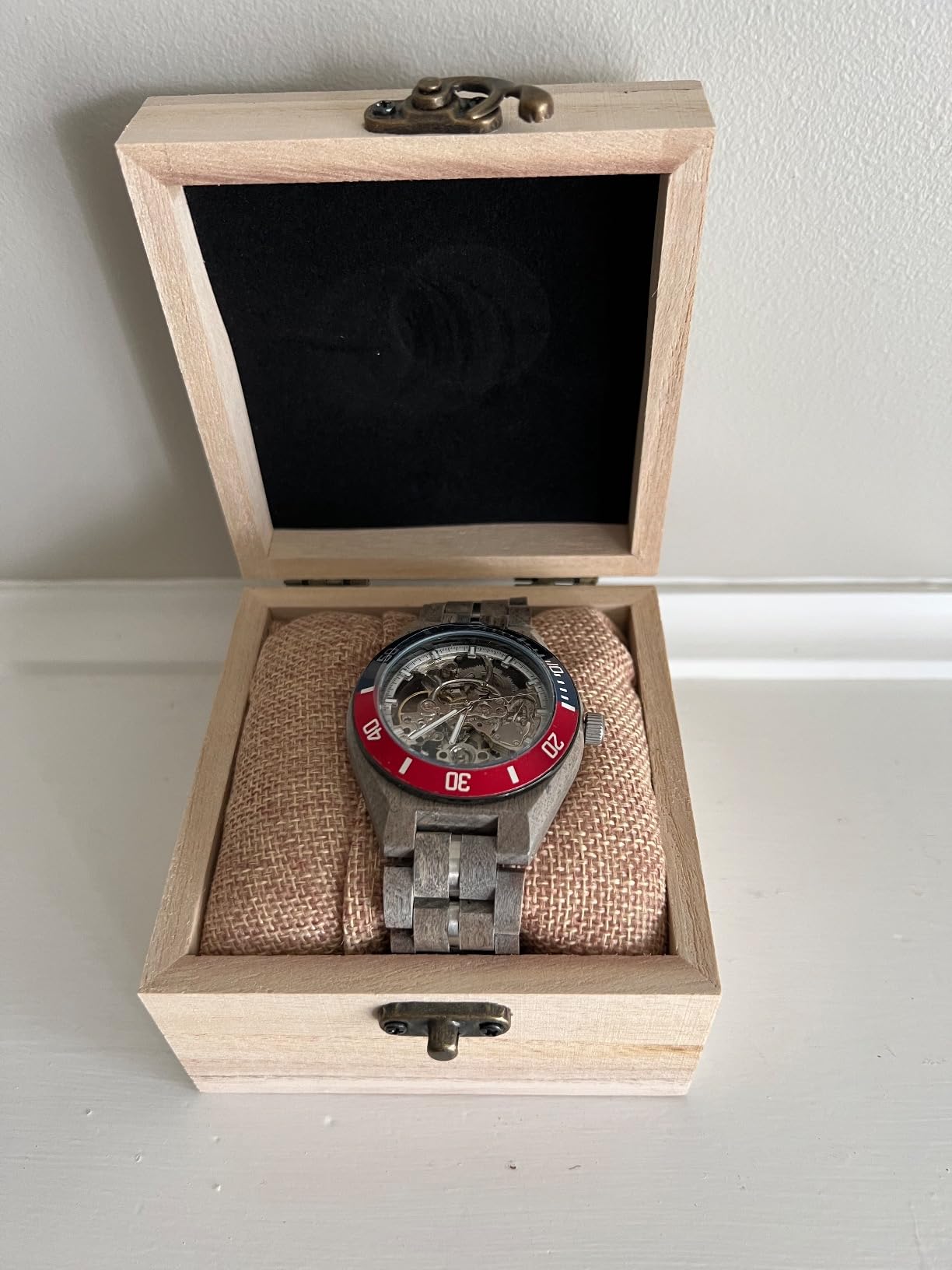 Stylish Alloy and Wooden Metal Fusion Understanding: Emphasize the stylish fusion of alloy and wooden metal, creating a visually striking and luxurious appeal. This combination not only enhances the watch's durability but also contributes to its overall aesthetic charm.