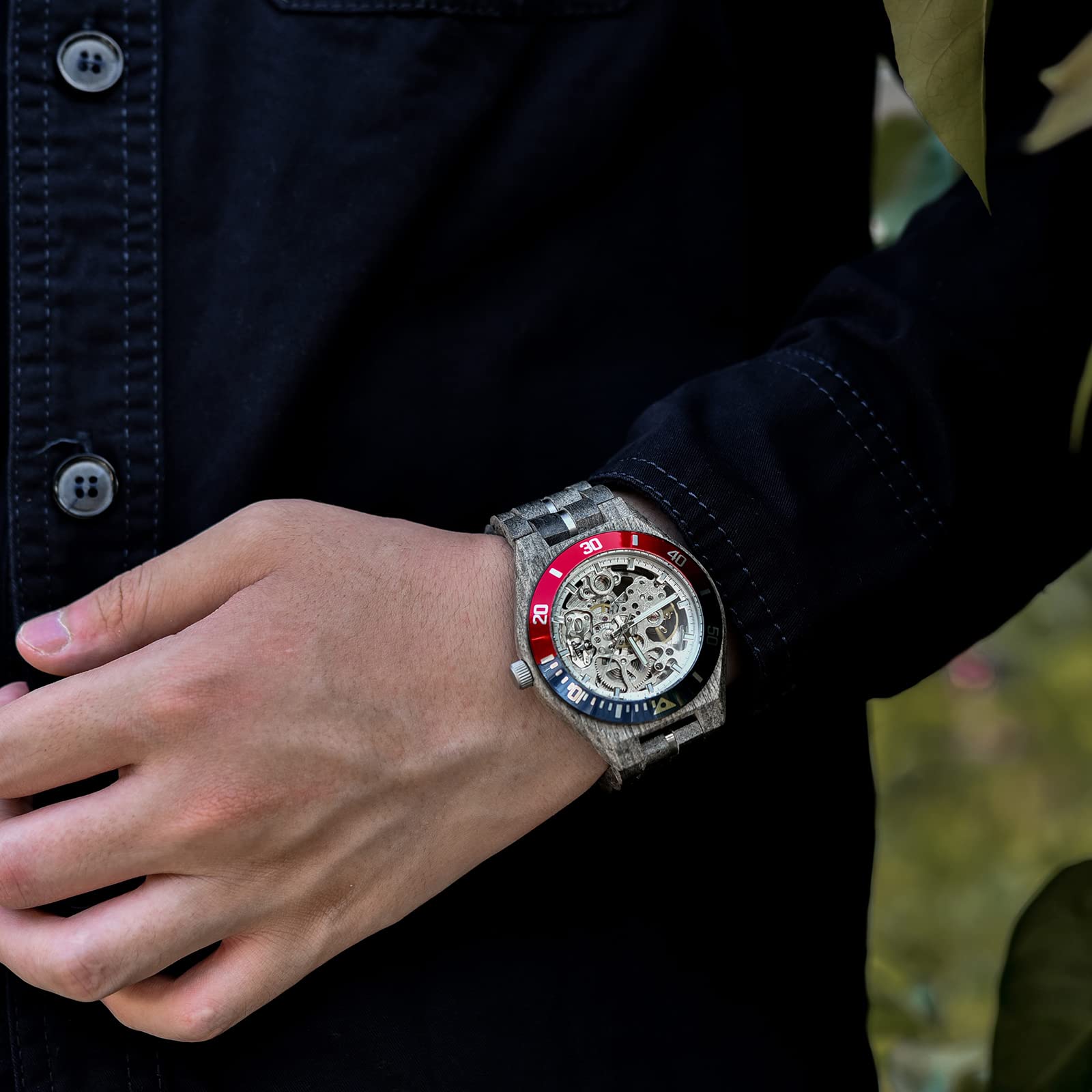 Skeleton Design for Mechanical Aesthetics: Showcase the skeleton design, offering a glimpse into the mechanical aesthetics beneath the surface. The exposed inner workings become a captivating piece of mechanical art on the wrist, appealing to enthusiasts who appreciate the intricacies of watchmaking.