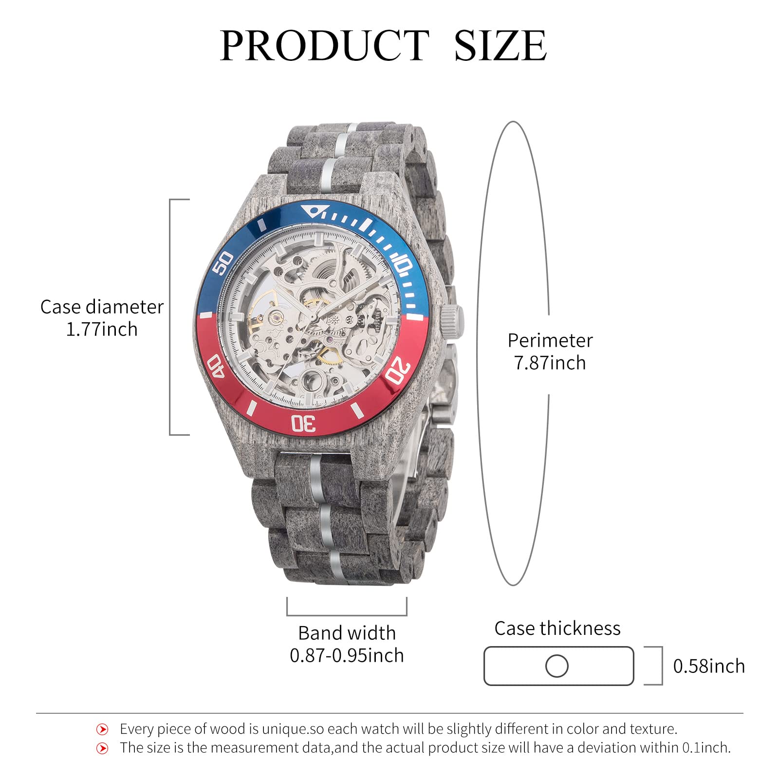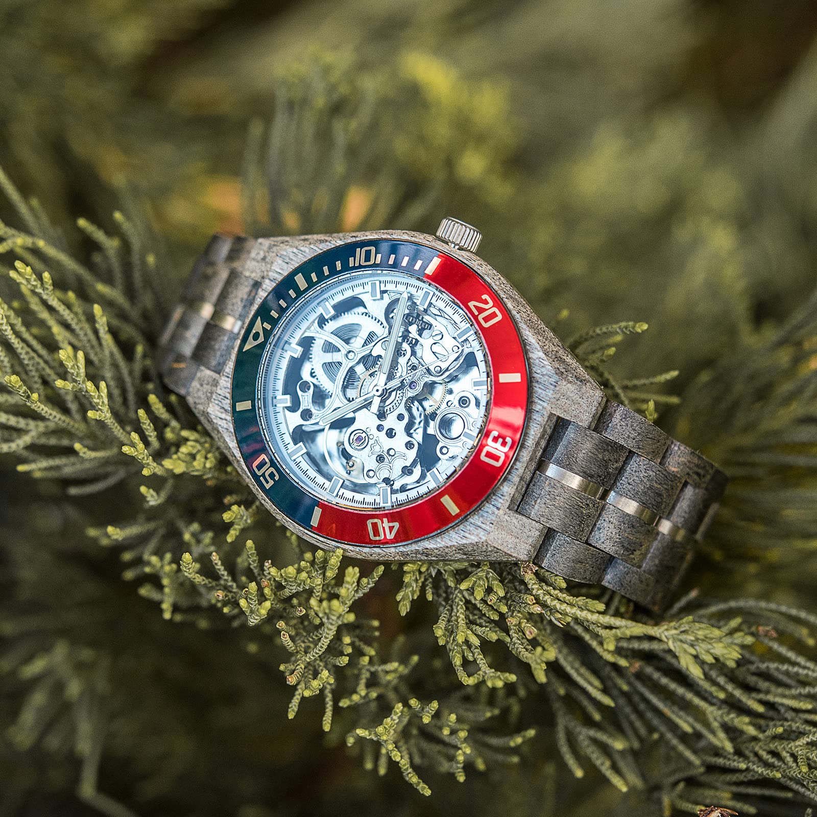 【Skeleton Design for Mechanical Aesthetics】 With a skeleton design, this men's watch offers a glimpse into the mechanical aesthetics beneath the surface. The exposed inner workings, coupled with the olive alloy and wooden metal elements, create a watch that not only tells time but also becomes a captivating piece of mechanical art on the wrist.