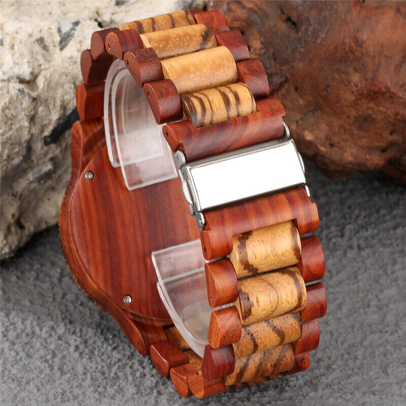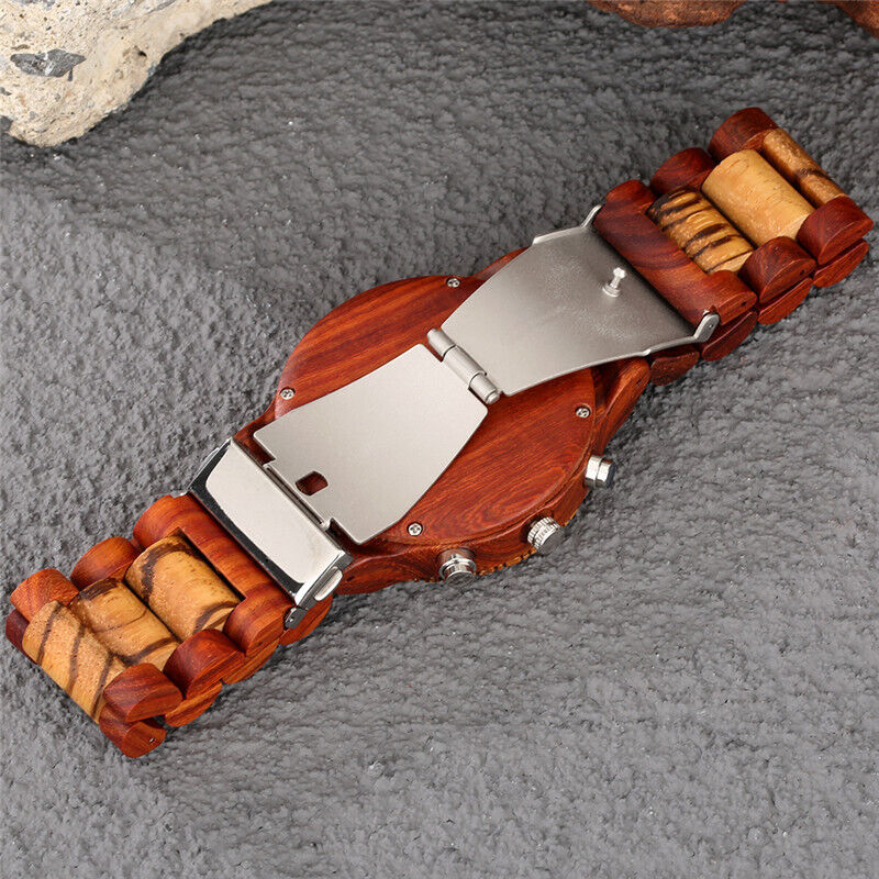 Wooden Watch Care: Given the wooden design, follow care instructions to preserve the integrity of the wood. Avoid prolonged exposure to extreme conditions to maintain the watch's aesthetic appeal.