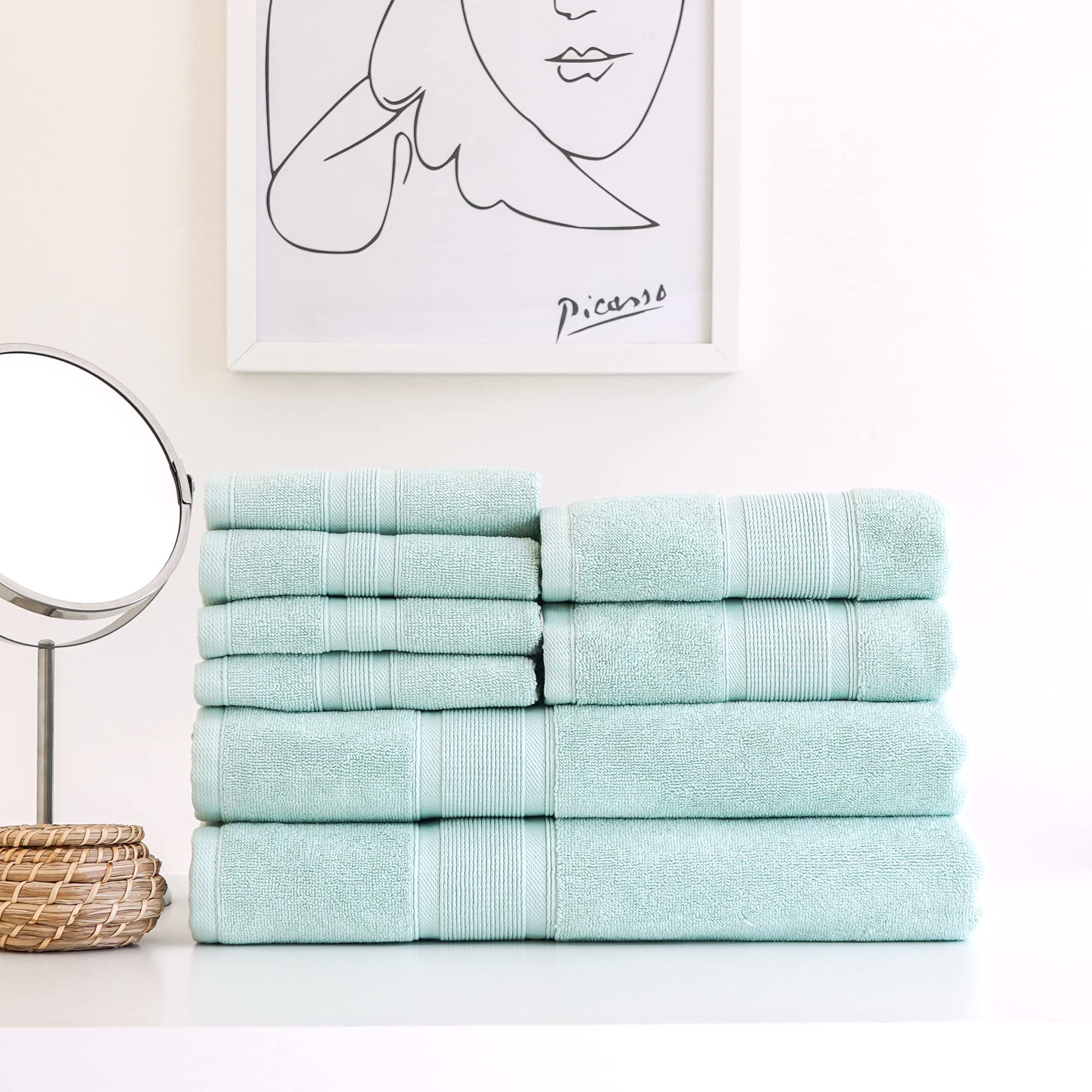 Luxurious 8-Piece Towel Set: Elevate your bathroom experience with the 8 Piece Glacier Color Towel Set. This set includes a variety of sizes, including bath towels, hand towels, and washcloths, providing a complete and coordinated ensemble for your bathroom.
