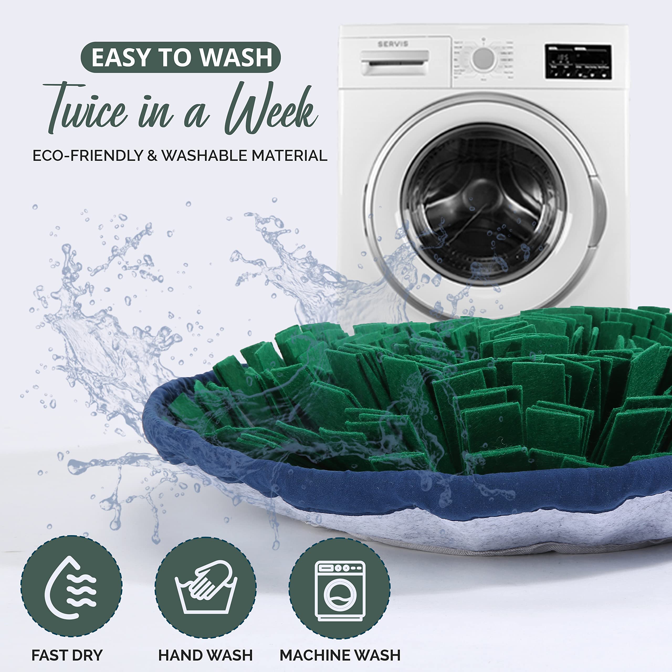 ✅【ECO-FRIENDLY & WASHABLE MATERIAL 】 This dog treat puzzle is made of eco-friendly sustainable anti pilling upgraded polar fleece material. You can wash it in machine or wash by hand. This snuffle mat for dogs small is durable and will be a good addition in your dog training toys.