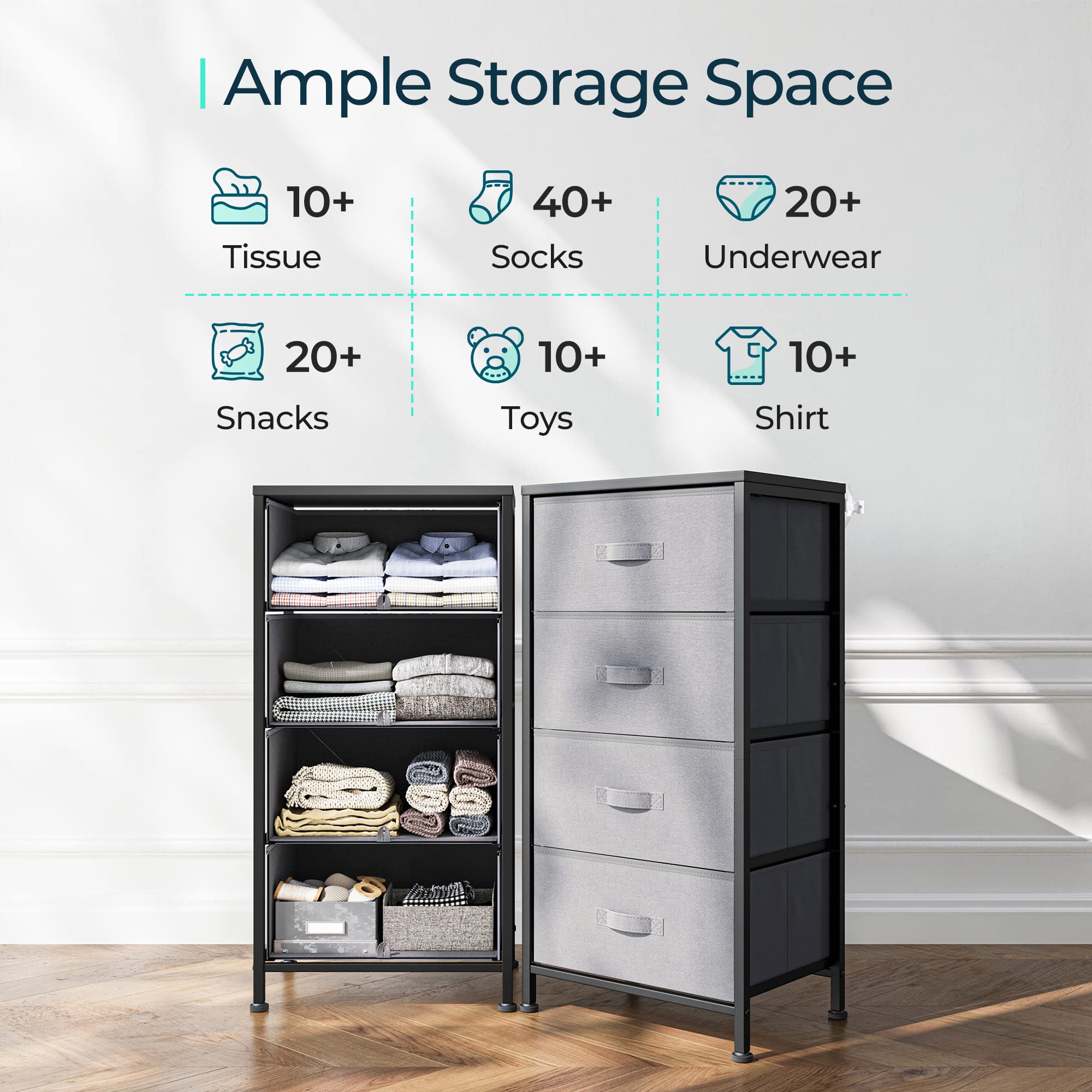 Optimal Storage Solution: With four spacious drawers, this chest of drawers offers practical storage for clothing, accessories, or other bedroom essentials. The ample space allows for easy organization and accessibility to keep your space clutter-free.