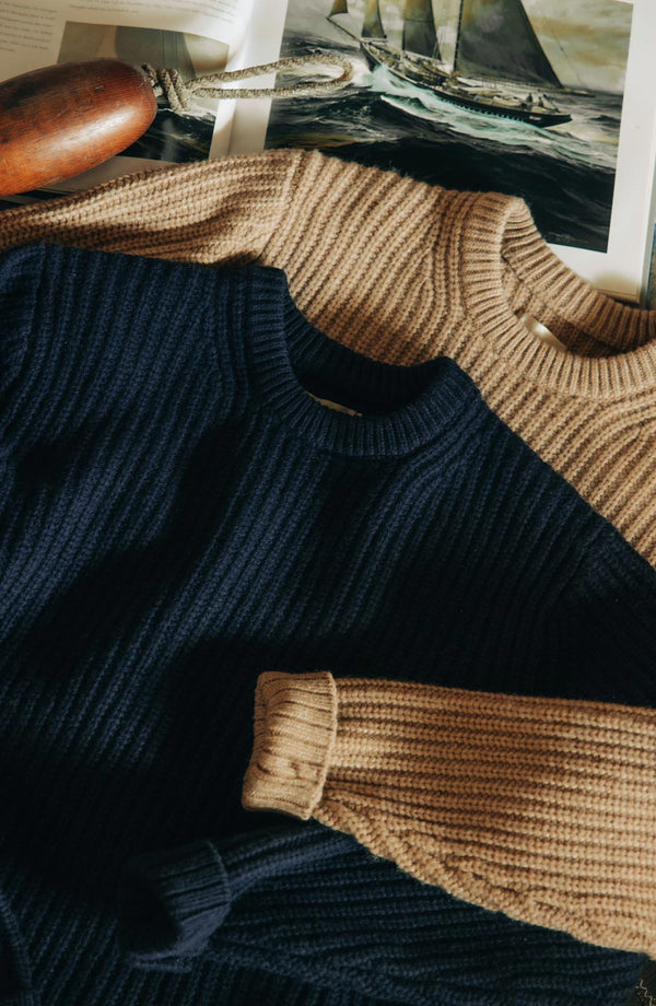 The Sweater’s rib stitch construction is instantly recognizable as a piece of dockside history, but we elevated our take on this cozy classic with breathable, temperature-regulating merino wool to extend its utility across all seasons. While the yarn gauge and knit is voluminous and chunky, double-thick ribbing at the cuffs and collar keep the silhouette tidy, so it’ll make waves whether you wear it on its own or as a mid-layer.