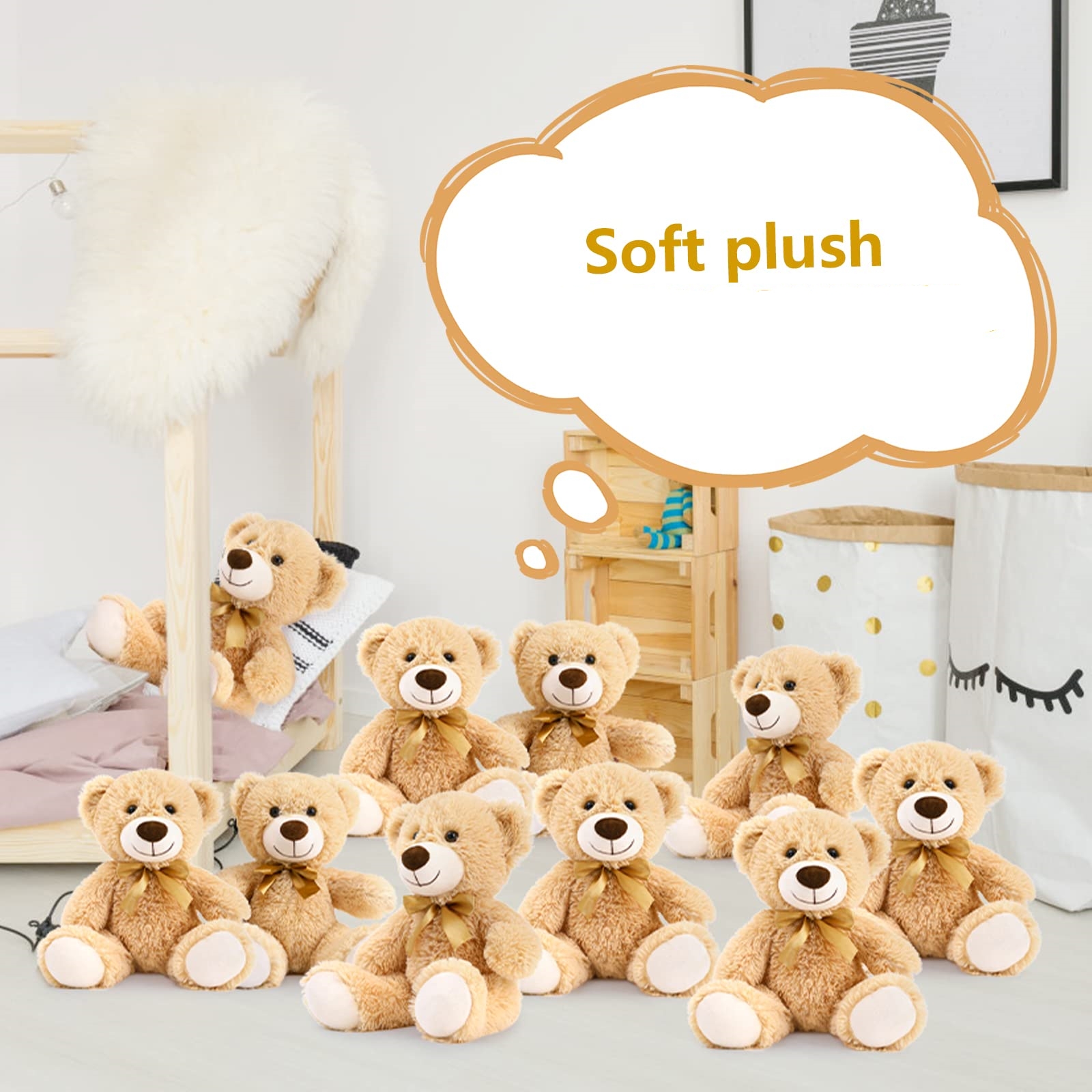 【Decorations for Any Occasion】: Each set includes 10 pcs small 13.5" teddy bear stuffed animals, giving you plenty to share and spread the love. Whether you're celebrating the arrival of a new baby, throwing a memorable party, or expressing your affection on Valentine's Day, these bulk teddy bears are the perfect choice. Our MaoGoLan plush teddy bears will add charm and cuteness to any event. They also can be used as table centerpieces or party favors.
