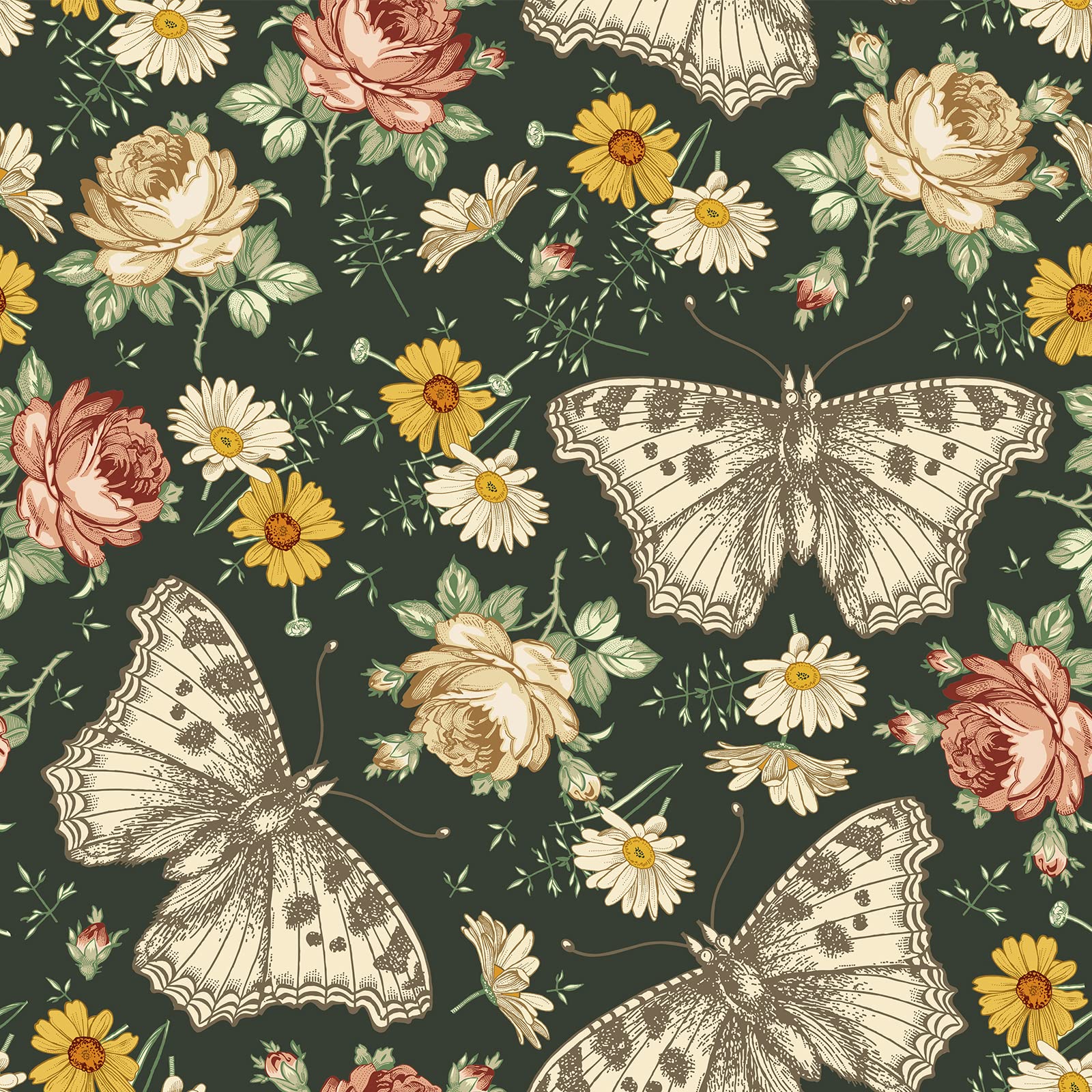 Dark Floral Wallpaper Peel and Stick Vintage Daisy Peony Butterfly Mural-home