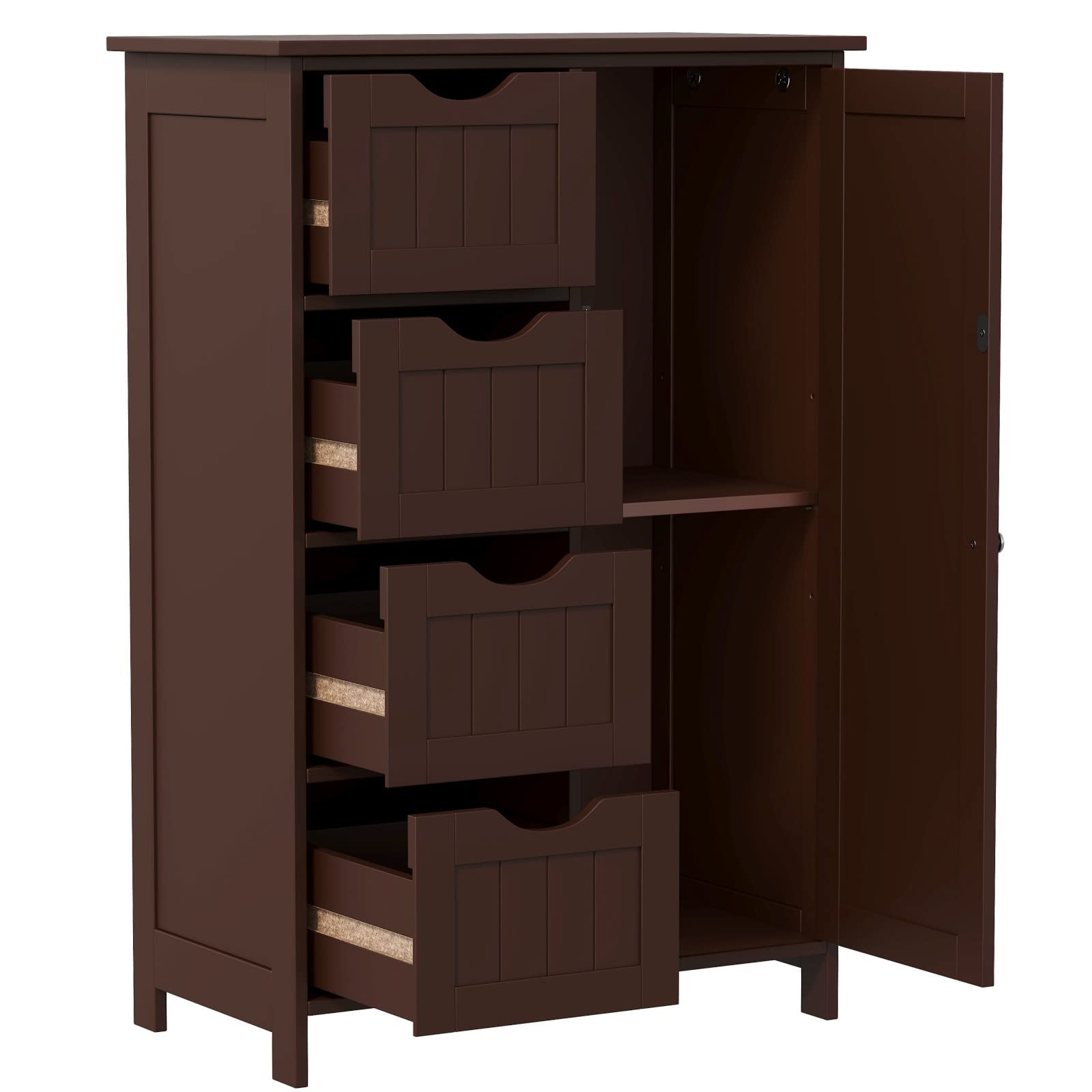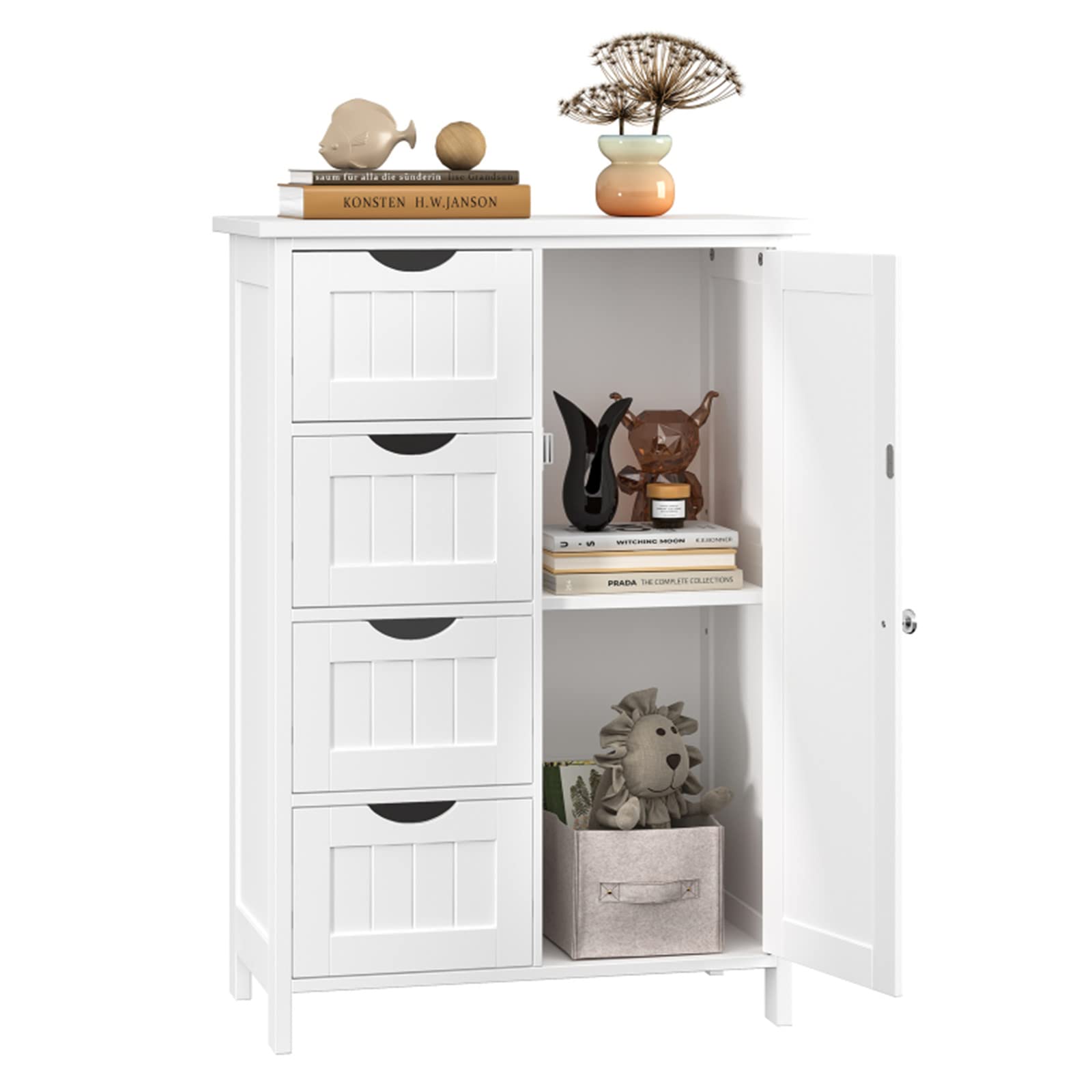 Bathroom Floor Cabinet, Freestanding Bathroom Cabinet, Storage Cabinet with 4 Drawers and Adjustable Shelf for Entryway Storage-Furniture