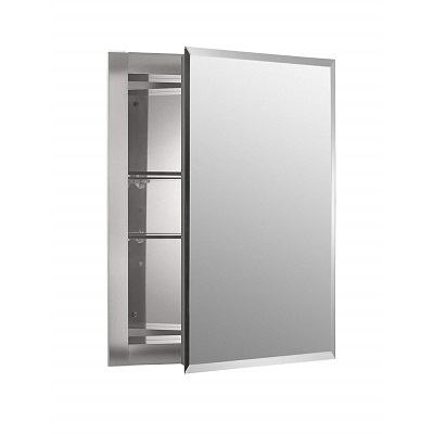 16" W x 20" H Aluminum Single-Door Medicine Cabinet with Mirrored Door-bathroom